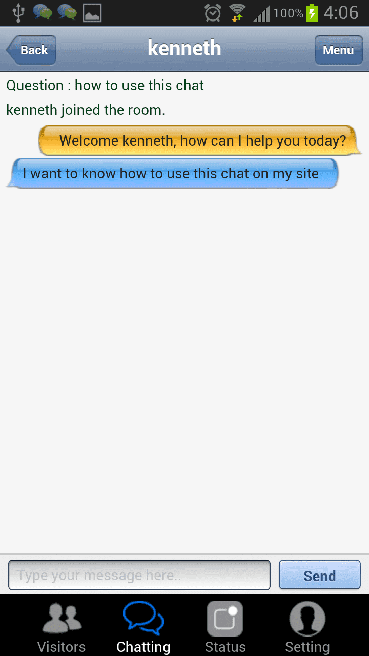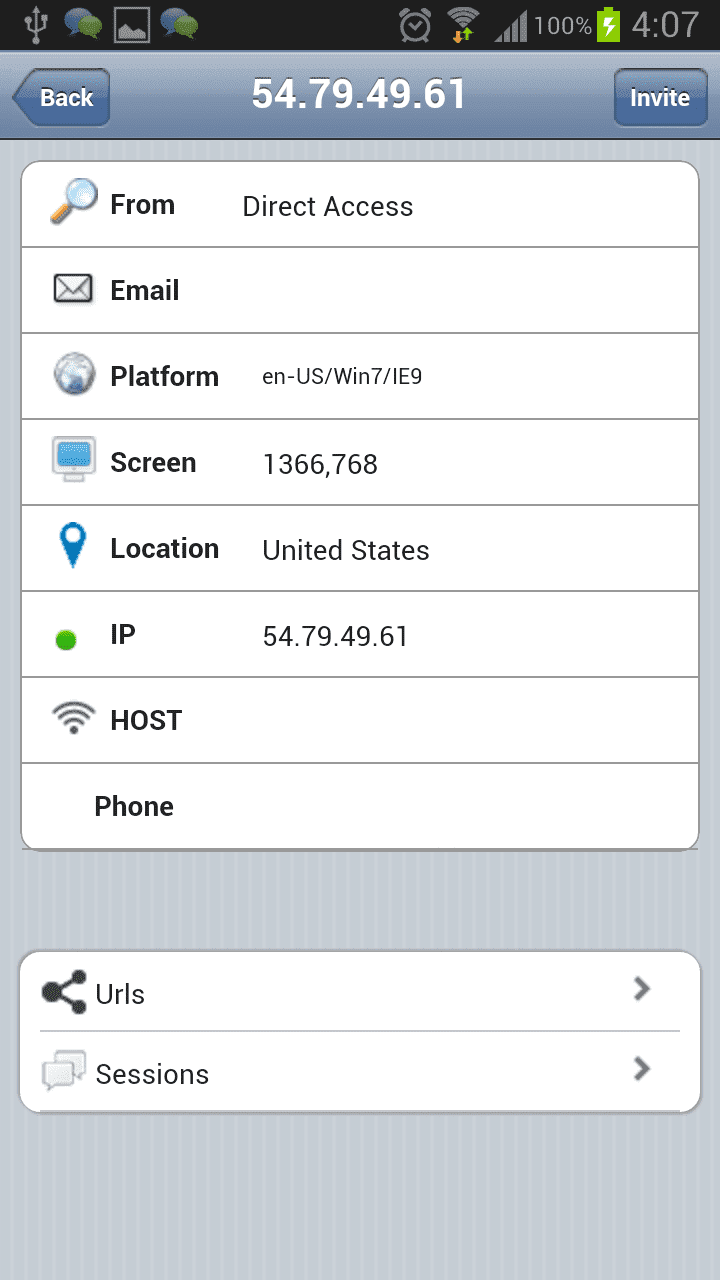 The application for IOS/Android devices includes all essential features for effective communication with your website visitors. The major features include real time traffic monitoring and chatting, chat invitations. The application will notify you of the new incoming chats even if you close it, unless you sign out of the system.